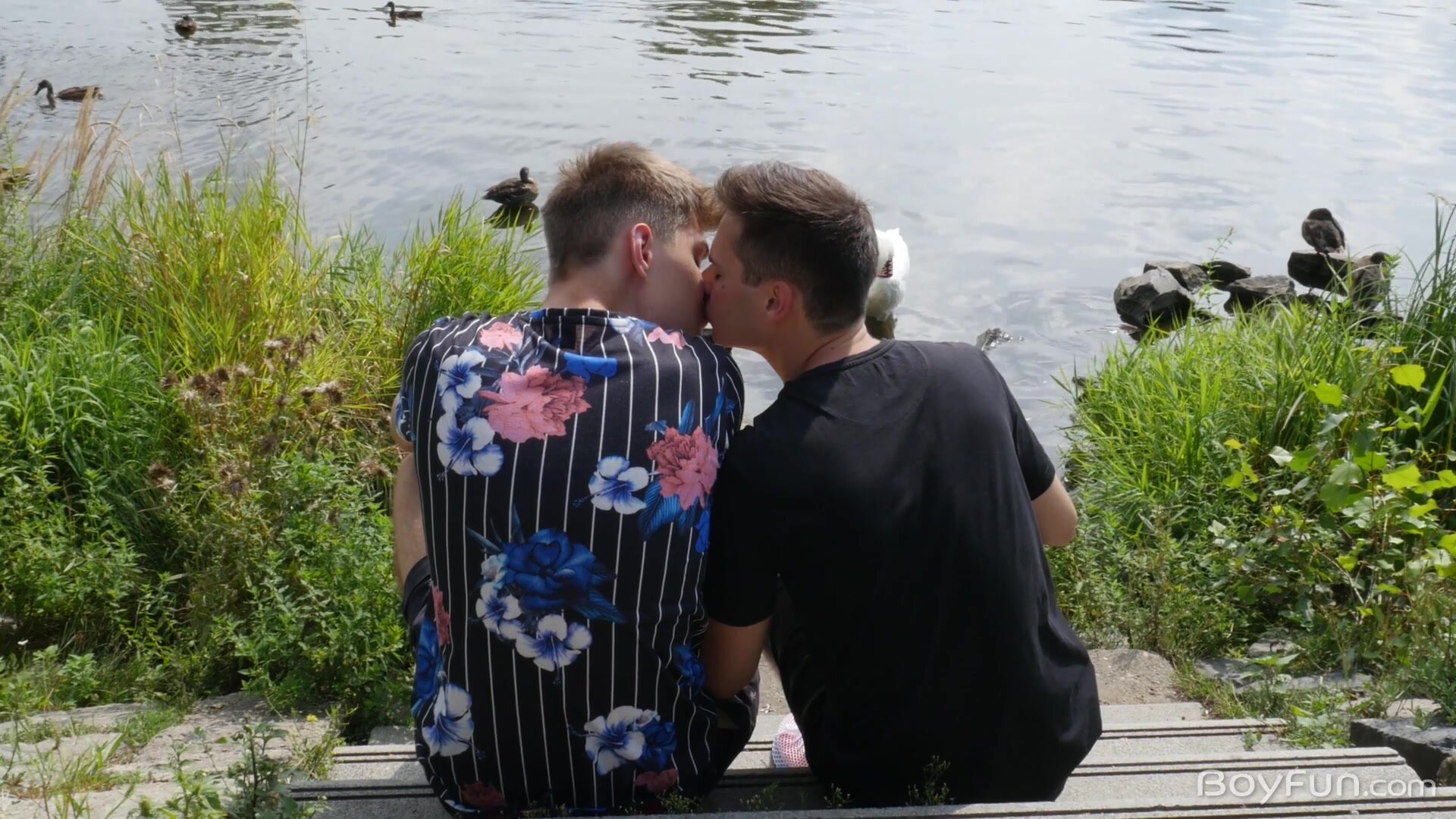 Curtis has been enjoying a little time by the river feeding the birds, but although it's a lovely way to spend a few hours on a quiet afternoon there are certainly better ways to have fun in such a beautiful city. The arrival of gorgeous local Liam offers just such an opportunity, the two saying hello and not even exchanging names before Curtis is following his new friend back to his place. Then again, names aren't necessary for what these two boys are about to share.