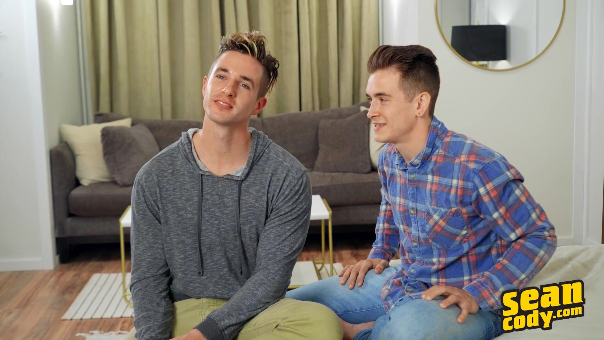 Four years after shooting a solo, Garrett is back at Sean Cody for his first-ever sexual experience with a guy, and lucky Nikolai will be the one showing him the ropes. Garrett explains, "It's all new to me so I'm really just trying to stay focused and sexy." Nikolai helps to break the ice with a kiss, then asks, "Yea or nay?" "Yay!" is Garrett's reply as the guys make out and get naked. Nikolai blows the newbie's mind with a blowjob, then Garrett eats his hole and fucks him doggystyle before cumming on his face, but Nikolai wants more of that cock before he's done.