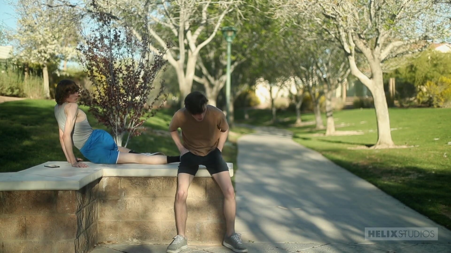 We follow lusty Las Vegas native, and new boy on the scene, Ryder Rockwell as he takes his morning jog around the neighborhood. The tight bodied twenty-three year old is absolutely beautiful, with chiseled bone structure, and blazingly bright blue eyes, which he uses to flirt with naughty neighbor, Spikey Dee. The horny newbie takes a break from his brisk jog right next to neighborhood bad boy Spikey, takes a breather, and bats his beautiful "fuck me" baby blues.