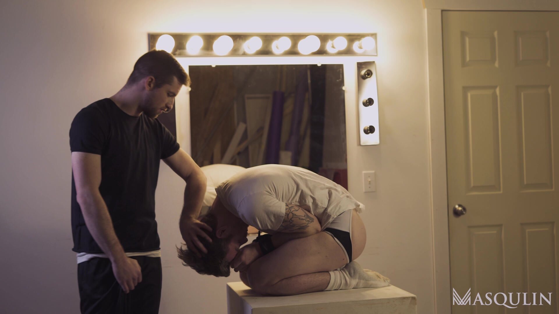 Inside the dark lit 4-Doors Club, Thyle Knoxx makes his way to the door labeled ‘Submission’. Inside, he finds a submissive Linus Gray tied and ready to be used by Thyle’s big, thick cock. Linus moans in ecstasy while getting fucked and ready for his hole to be filled with Thyle’s cum. Thank You, Sir!