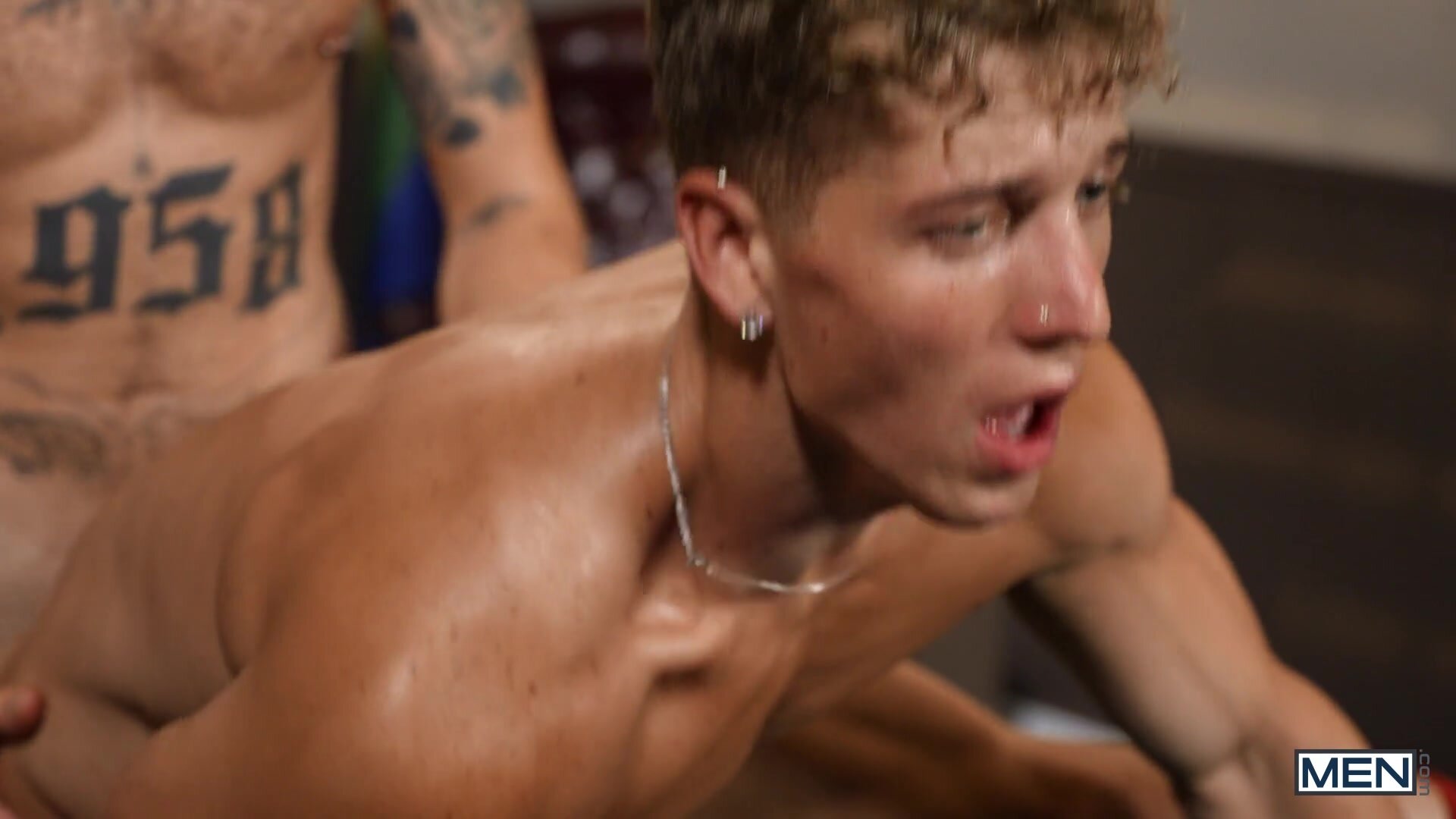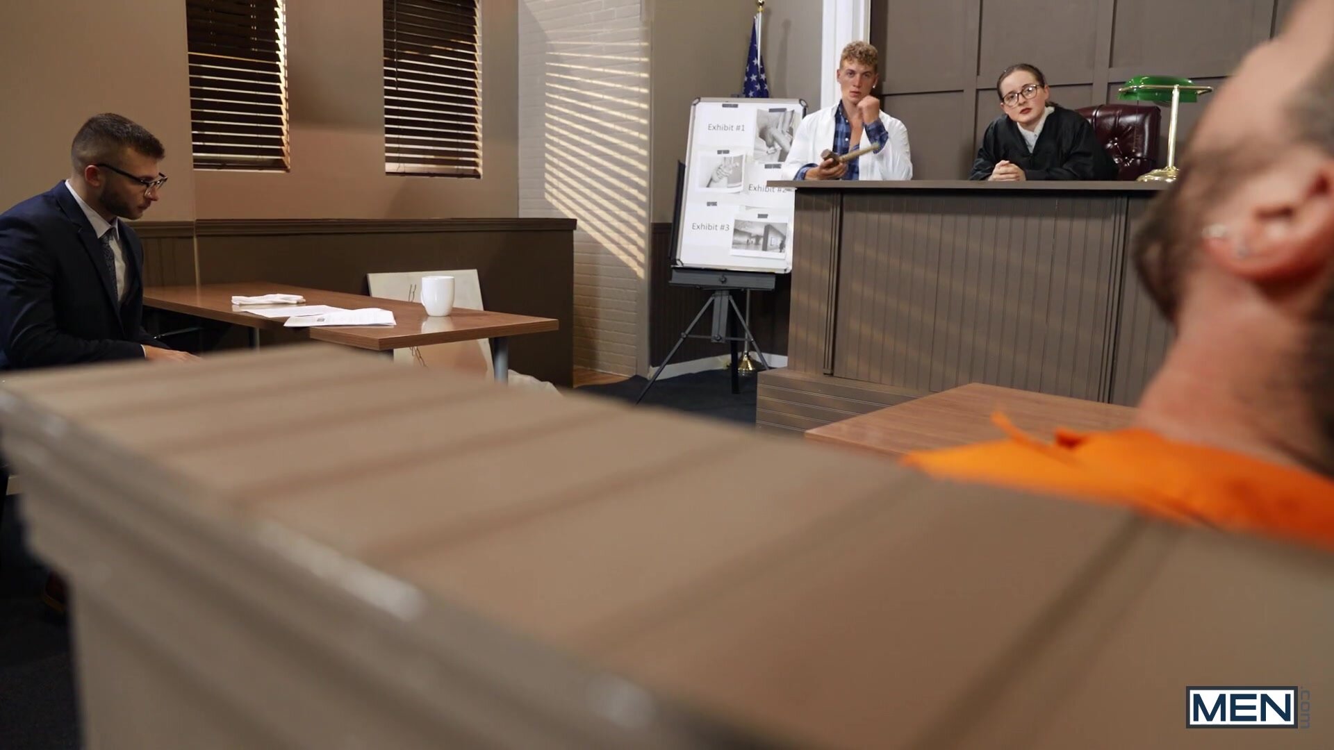 Deviant Chris Damned is led to court in chains, accused of sticking his dick through a painting. Cockspert witness Felix Fox arrives, confident that he'll prove Chris's guilt beyond a shadow of a doubt, but ends up proving Chris was falsely accused! To apologize, Felix sucks Chris's cock, then Chris bends Felix over, pulls out his butt plug, and fucks his hole. The bottom asks Chris to unlock his cock cage, then the top fucks him missionary, and Felix rides Chris on the judge's box! Chris fucks the expert bottom doggystyle till Felix cums, then accepts his apology with a facial.