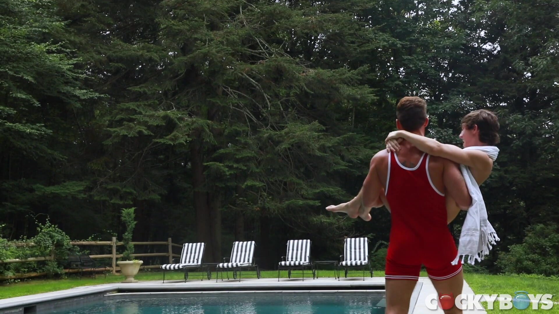 When Dallas asks if Drew can join them, Rocky/Roman agrees and as he sits on the edge of the pool, they take turns sucking his cock. As inhibitions & feelings melt away, an increasingly emboldened Drew eats our Rocky/Roman, and when he lets Dallas rim the lifeguard, Drew gets out of the pool to face fuck Rocky/Roman. As he does, Drew bends forward to cross another threshold and make out with Dallas.