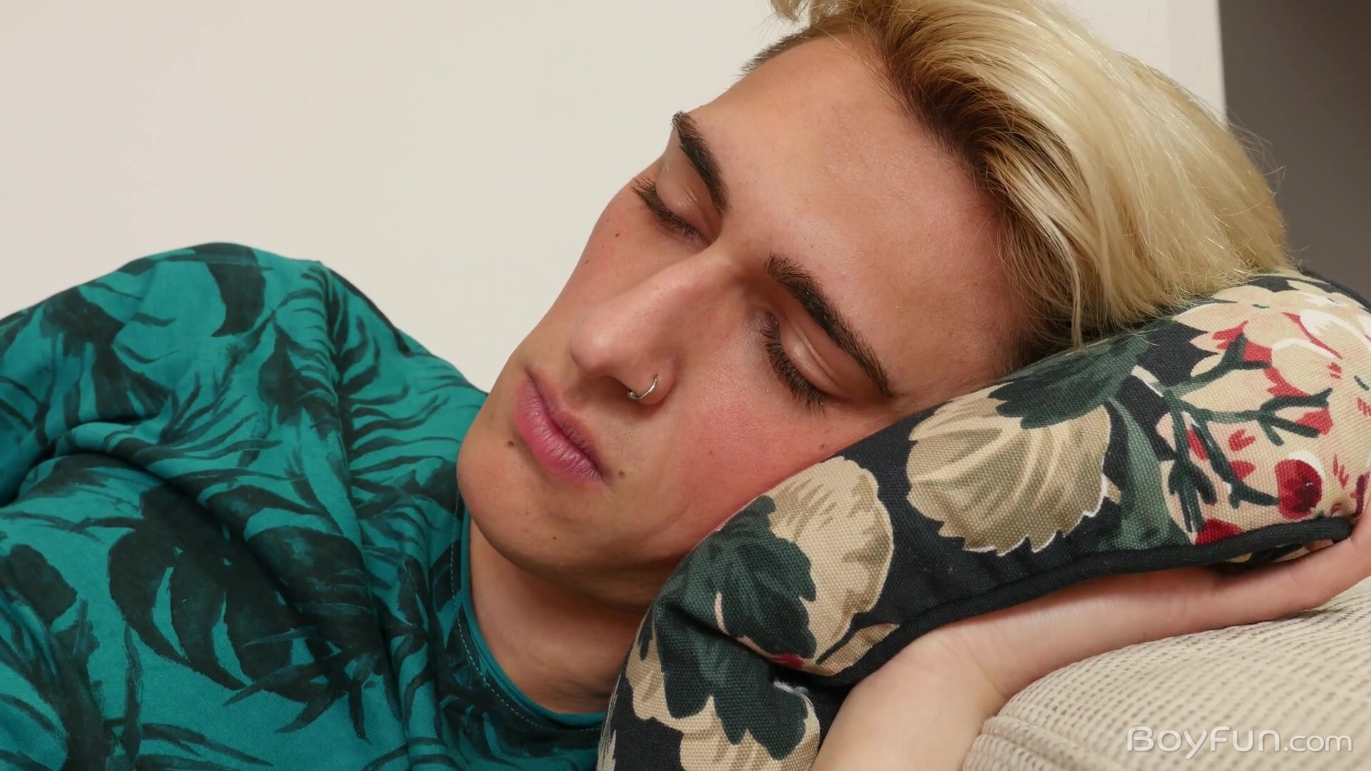 Cutie Jacob Dolce and his boyfriend Jed Fuller don't care if their friend Andy Ford is snoozing on the couch nearby, when the boys get the urge for some BoyFun they'll be making out and groping their hardening dicks in their shorts regardless.