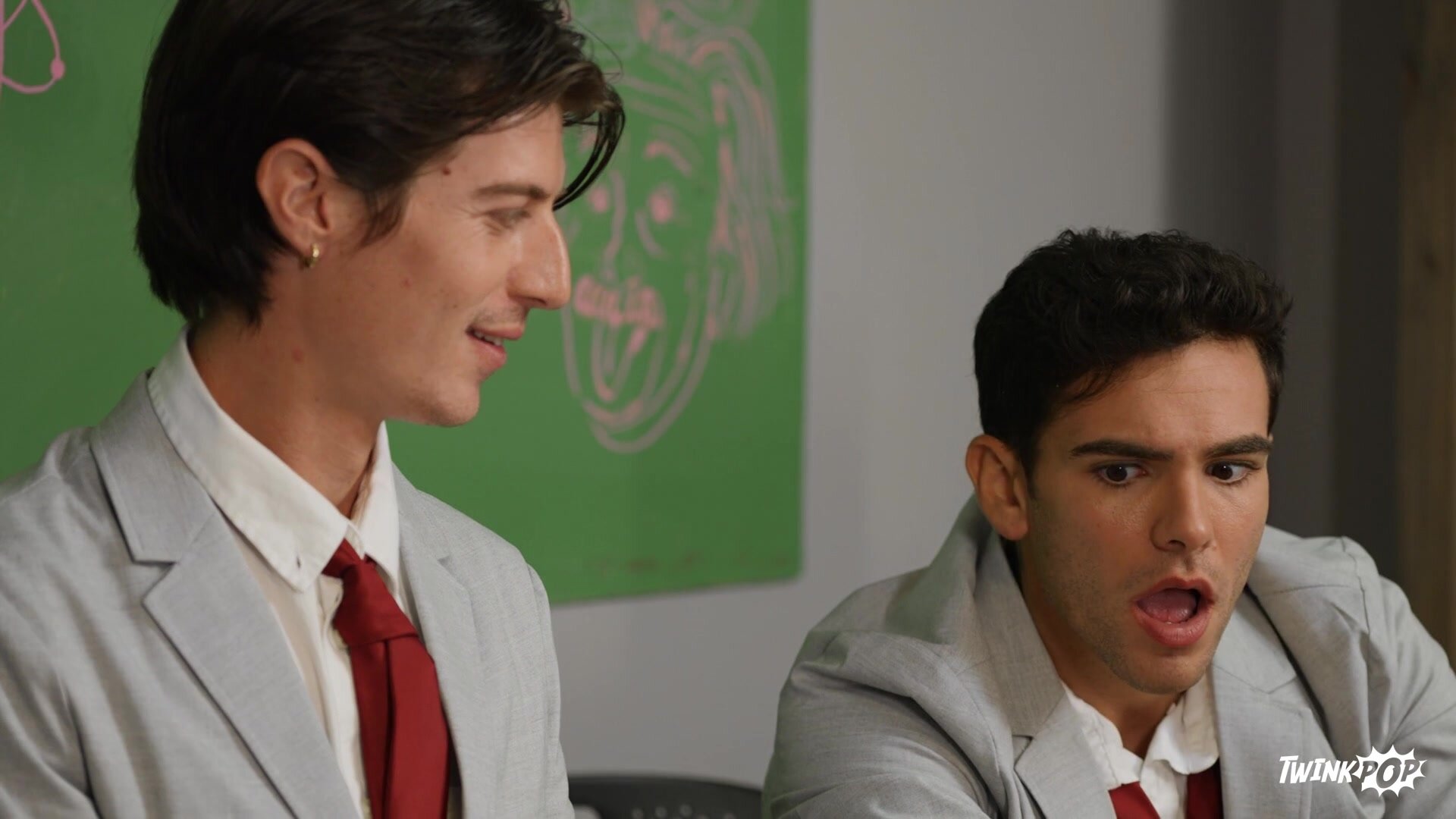 It's final exam day for these three MEN U twinks, but their professor is late. Damian Night wants to ditch, but Luke Connors says they need to stay for the test, and Jake Preston suggests waiting five more minutes. Damian's bored and tells studious Luke to teach him to use the scale, and pretty soon the three twinks are in a dick-measuring contest. Luke is impressed by Jake and Damian's hard dicks, but the other two truly can't believe their eyes when Luke takes out his enormous boner! They join forces to suck it, then Jake and Luke spit-roast Damian on the professor's desk. The guys take turns fucking that hole, then lucky Luke gets pounded by Jake as he drills Damian before the bottom takes a double facial. But after Damian cums, the professor arrives in time to catch Luke naked...