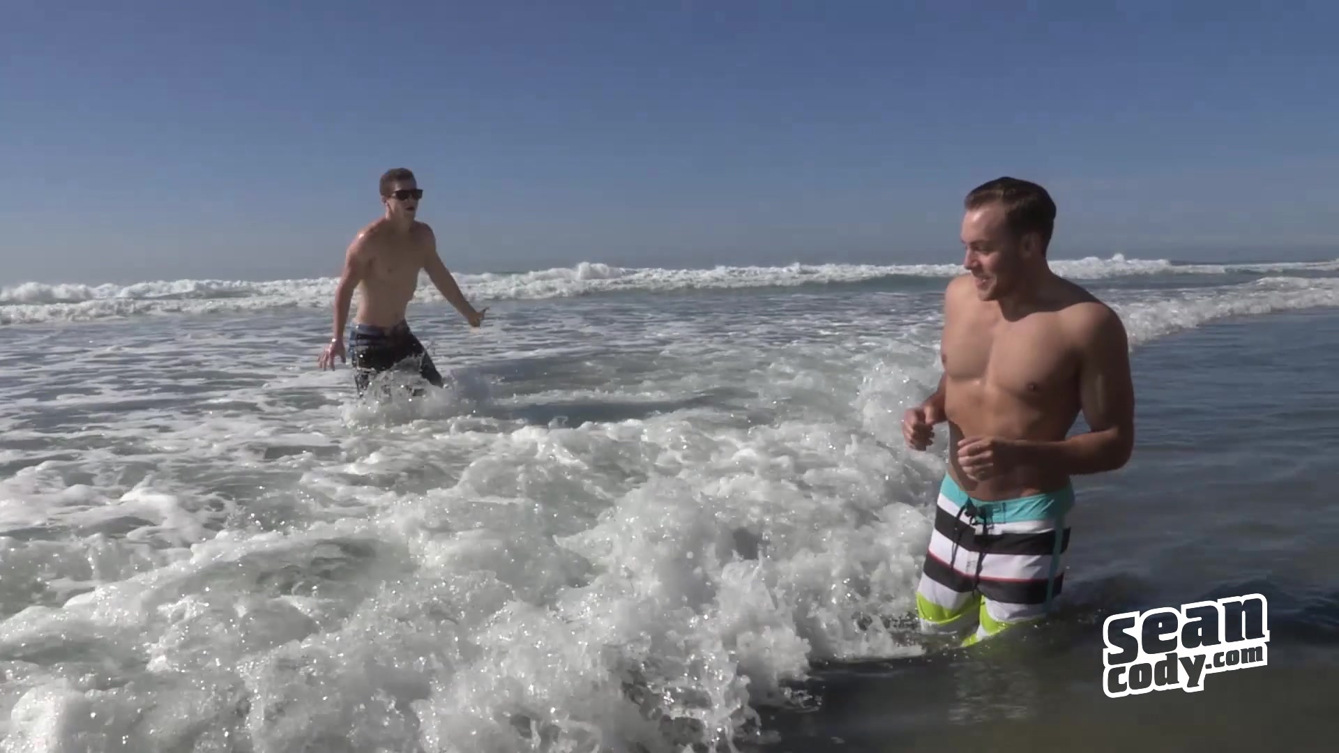 With winter hitting everywhere but San Diego, Cory and Robbie decided to head out to the beach for a little naked-in-the-sun fun. “Do people ever fool around down here?” Cory asked. Robbie kind of laughed at Cory, “Why do you think they brought us down here?!” Clearly Robbie was on to our plan. The guys planted an umbrella down and got to business. Robbie wasted no time trying to deep throat all of Cory. They messed around for a while until finally it was time to bust, then ran straight back into the ocean bare-assed. When we got back to the studio, it was time for Robbie to prove that he really is a bottom. Cory pounded him out nice and hard until a thick load ended up deep in his ass. “I like coming out here and making new friends. Especially ones with a nice dick like his!”