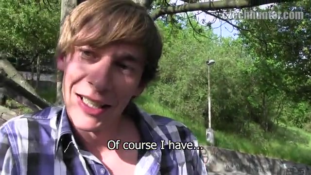 I rented a nice apartment with a big balcony and a wonderful view over Prague. All I still needed was a boy willing to perform on it. About 500 meter from there was a sports hall. I was a little bit late and when I passed by the training already seemed to be over. Just two boys were still waiting and smoking in front of the building. One of them looked quite cute with his long hair. I asked him to do a short interview in front of my cam and he agreed. He was unemployed and needed every crown I offered him. He stripped right there and sold me his undies. Then we went to the legendary park where I was able to persuade him for a blow-job. How did the story continue? Well, did I mention the balcony yet?