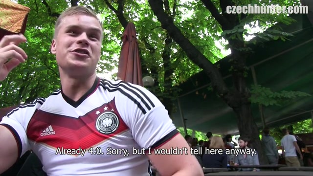 With the FIFA world cup on, I knew it would be great to seduce and persuade some young football fans. So I took my cam and went to a big beer garden, where I knew they do public viewing. It was packed with German and Portuguese fans. It took some time till I’ve found some young Czech lads. Best things about football is, that no one is watching it by himself. I’ve joined two friends, one of them really reminded me that German player Schweinsteiger. I’ve been waiting for the right moment to start my sex-for-money negotiation. I’ve tried what didn’t work for a long time. Asked them to be a true friends and to go into this deal together. Trust me Gents, when I say that these two guy are true brothers and they do everything together.