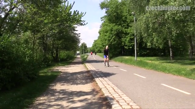 I had to take care not to get hit by one of those reckless rollerblading guys. Several of them would have fit my fantasies today… but they just all went too fast Finally I spotted the perfect catch. A young guy with blond hair. Well-built and – as I found out – working part-time in a call center as a sales agent. His job sounds not too spectacular, I know. But as it wasn’t well-paid I decided to take the risk. His looks turned me on so much… I had to try it. And after a whole while I talked him into comparing our dicks. A few minutes and a few thousand Crowns later he had my dick in his mouth. But how far would he go? Would he allow me to pop his cherry as well? I was up to fuck a rollerblading callcenter-guy’s ass today…