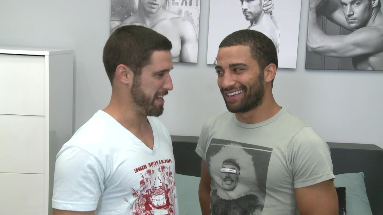 Matt Castro and Robert Craig can feel the energy between them before they even take off their clothes. Robert peels off the t-shirt that Matt is wearing, revealing his beautiful chest. Robert eagerly gobbles down the raging hardon that is straining to break free of the sexy tight briefs Matt is wearing. He takes as much of the rock hard cock as he can down his throat and works it with everything he has got. They embrace and kiss for a nice long while, feeling their boners rubbing against each other, between their flat stomachs. Matt works Robert up to full mast using his mouth to get him nice and horny, then he rams his dick deep into his waiting hole. Matt is a natural top and wastes no time in getting Robert deep into the mindset of craving his ass to be filled with thick meaty cock. And when Matt lays back onto the bed, Robert lowers himself down onto that towering cock and rides it home.