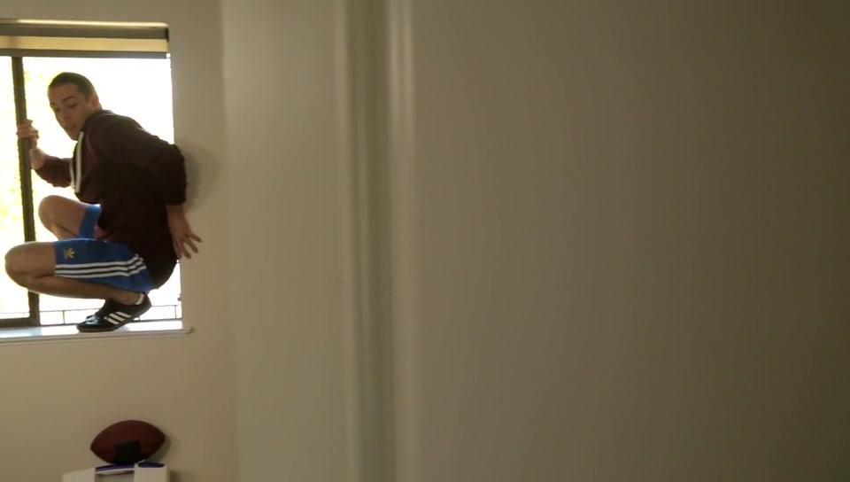Johnny climbs ontop of Brendan and they 69 until Johnny is nice and hard, then he bends Brendan over to teach him the real lesson, pounding him from behind as he pushes him into the open window for all of Brendan's pledges to see. Johnny flips Brendan over and Brendan rides Johnny reverse, as Torque slaps his ass while continuing to grind out his punishment, before pulling out and blasting Brendan with a load he'll remember the next time he thinks about breaking into someone's house - Johnny Torque, Brendan Phillips