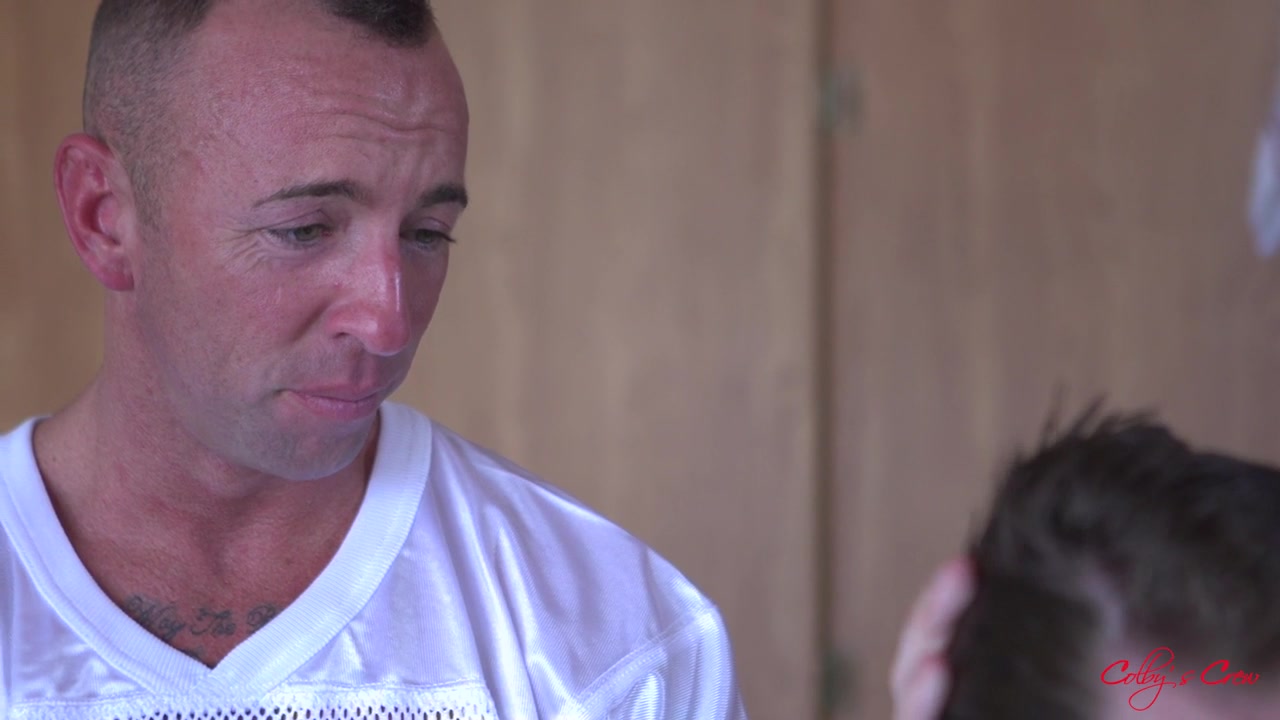 Jack Hunter is one anxious college football captain. His game was off today and he’s frustrated. He hasn’t been performing to his full potential, even though his coach has been trying to help him through his playbook and been boosting his morale. Jack’s scholarship is riding on his ability to keep his position while several of his teammates are clamoring to take his place in the starting lineup. Coach Matt Hart empathizes with his top player, but he makes it clear that Jake needs to change things up. Jack is ready to do “whatever I gotta do” to keep his scholarship, to stay on the team and in college. In Coach Hart’s mind “whatever I gotta do” has a very specific and personal meaning. As soon as he gets up off the bench, he springs his flaccid cock in Jack’s face. The team captain’s “Oh, you’re talking about that” comment and resigned look on his face tells him exactly what he needs to do to secure his position. Jack bends forward and starts giving his coach a very skillful blow job. He gets him nice and hard and deep throats what has now become a good 8 inches of stiff curved meat. Hart makes himself reassuring as he encourages his young protege and his talented sucking effort. He gags him as he stridently shoves that cock deep into the kid’s mouth. “Show me that you want it”, he says to the eager kid. We’re not sure if he’s referring to the huge cock between his legs or the spot on the team. But the distinction seems moot at this point. Hart keeps feeding Jack’s hungry mouth with his hefty cock and the kid is getting pretty eager about his handy work. Asking Jack if he still wants to be a star, Coach Hart goes down on Jack growing piece of meat. He sucks the kid’s thick monster cock with ease, yet can’t get very far down, given the size of meat he’s working with. He suck’s his boy’s balls and cock and Jack realizes he’s got some power over the coach because of the sheer size of his cock. Then the coach aims for his star captain’s hot hole lubing it up with his tonguing action. Jack is ecstatic. He is begging for a pounding and the coach is getting him ripe and ready for his cock. As Jack is on the bench on all fours, Coach plugs the kid’s hole with his stiff cock. At this point, Jack seems pretty happy being his coach’s bitch, doing what he needs to do, and what he seemingly wants to do also. The coach’s cock thrashing doesn’t relent. He gives it as hard as he can and his young athlete is loving it. Jack keeps riding his coach’s dick, taking it all the way in. Jack is rock hard as the coach lays him on the bench to fuck him face to face. As he’s getting a hard deep fuck, Jack busts his nut, spewing his load all over his abs. Then Coach Hart moves quickly to his face where he unleashes his load in Jack’s waiting mouth. More than pleased with himself, he reassures his boy that his performance was worthy of keeping him in the lineup. There’s more than one way to get your touchdown! - Jack Hunter, Matt Hart