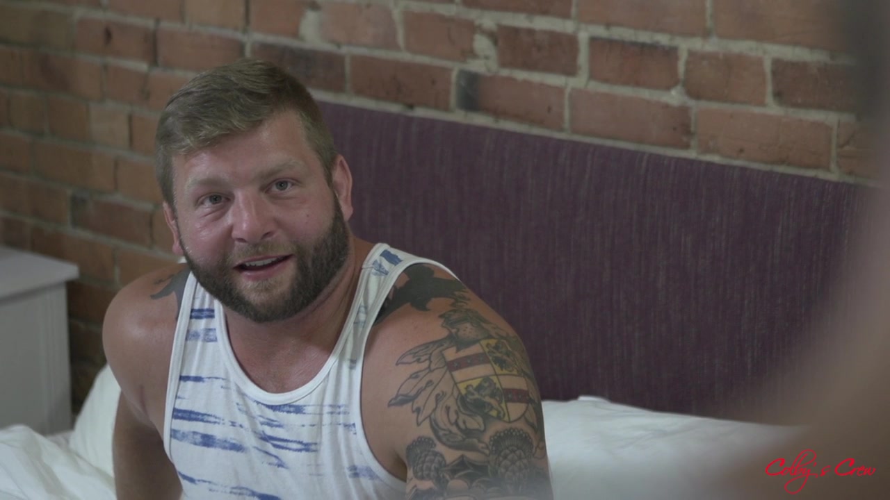 Launching a new site requires a lot of work and commitment. And Colby has been putting much effort into building it from scratch, focusing this day on finding hot new talent. While he’s reviewing the site's application procedure, sexy French exchange student, Kevin David, bursts into his room. Kevin is Colby’s new roommate, he’s strapped for cash and looking for ways to boost his income while stateside. Seeking advice from his housemate, Colby tells Kevin about his porn work and its lucrative opportunities. Ever the great guy, Colby even offers to help Kevin apply. Although initially hesitate about the idea – or is it the language barrier that makes him seem uneasy and not so sure what to say – this horny Frenchman throws caution to the wind and seizes on the opportunity with giddy willingness. While Kevin cozies up alongside our burly stud on the bed to fill out the application, Colby shows him the form and tells him that he’ll need to provide some naked pics. Kevin, still somewhat feeling awkward, responds by telling Colby he has no naked pics of himself. With his handy cell phone within grasp, Colby offers to take a few then and there. Kevin stands and poses, peeling off layers of clothing as instructed. When Colby asks him to strike a boner, he seems a little bashful. Colby, always the benevolent older brother-like figure, offers to help his anxious young French newbie. With his masterful tongue and throat action, he gets his apprentice rock hard and ready. Taking a few more pics of Kevin with his sizable uncut tool, Colby can’t help himself and clamors for Kevin’s hot round butt. By now, Kevin appears all too comfortable, ready and willing. He heads back to the bed and there shows Colby how good of a cock sucker French guys can be, then he surrenders to Colby’s talented rim job and penetrating finger-fucking. Kevin moans and quivers with anticipation and, before long, our seasoned jock plugs his hole. Pounding with passion and a bone stiff cock, Colby’s boy-toy takes it up the ass from all sides. He’s definitely enjoying the ass fucking he’s getting and feverishly strokes his hefty cock. Colby then moves his boy on his back and starts to jack off over his face. Kevin is first to pop his seed, spreading his load over his stomach and very hard shaft, then curling his cum-covered foreskin up to his dick head. Hot! Seeing this pushes Colby over the edge as he spews his own jizz all over his boy’s face, letting it drip on those luscious French lips and then spreading it around with his cock head. Clearly, Colby has elevated the job of casting talent to a science! - Colby Jansen, Kevin David