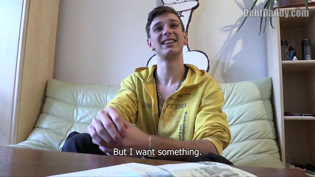 This boy was a typical case of irresponsible spending. He lost his job, stopped paying the rent, and then he took two consumer loans because of Christmas. 38 000 Crowns put together. He looked very casual about his problems. But I saw though the facade. He was desperate not to end up homeless. He even had a girlfriend which made his situation much more difficult. He refused my naughty offer at first but I eventually made him see the light. It was such a pleasure to touch his young firm body and fuck his cute little face. His room was decorated with strange motives for some reason. So I assumed it’s only appropriate to introduce his ass to my cock. I made him to work his ass off for my generous help.