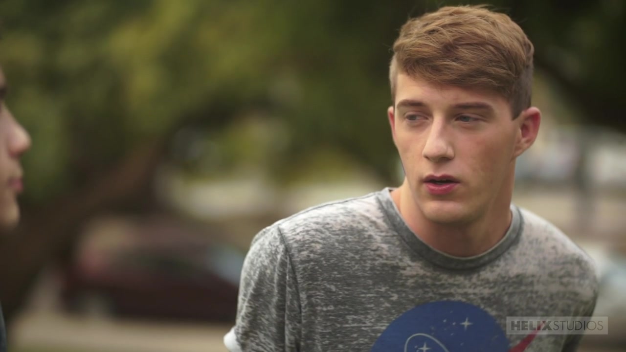 Get to know new cutie Cameron Parks with some spicy questions from bronze beauty Ryan Bailey in this sexy scene! He starts off cute, asking about Cameron's small town Key West upbringing and coming out story. Then Parks lets Ryan know he likes to be dominated and the entire mood gets REAL, and absolutely reeks of hot sex! Bailey can't contain his excitement, or his quickly growing groin so the boys get inside real quick, and quickly get down to business! From the jump, Ryan is a ravenous animal on top of his prey, moving the kid's hand out of the way so he can eat that cock! Feeling heat cumming from the blond beauty's backside, Ryan rams Cam's legs in the air with one swift movement and presses his pretty mouth deep inside. Cameron shows his appreciation by worshipping at the ample alter of Bailey's beast, inhaling all his master has to offer. Parks then parks his posterior on top of Ryan and Bailey massages their dicks together in a super hot, creative cock knock around! Cameron's can is practically begging to be banged and Bailey aims to please. He blasts his big boner upwards deep inside the kid with long slippery, bareback strokes. Ryan keeps his hand on Cam's cock, owning it with every stroke and only allowing his boy to touch it when he decides. Keeping control, Bailey pushes pretty boy down to get a better grip, then he just annihilates Parkers hole. The blond bottom's bone grows, filling with fuck juice. Cameron's cock valve opens drowning his six pack with it's sticky contents as Ryan jumps up to aim his groin gun at his boy's beautiful face. With his mug covered in cum, Cameron licks every drop from Bailey's super sized schlong as every good little boy should - Ryan Bailey, Cameron Parks
