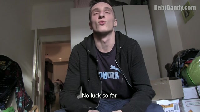 This boy was absolutely desperate. He was in some serious debts. He owed for rent, for his mobile, unpaid bills for utilities… The debts were destroying his life. His girlfriend dumped him because of them. She told him that she’s not going to be with some nobody who wasn’t able to manage his money. The boy wanted to move into a smaller and more affordable apartment but his landlord wouldn’t let him go unless he paid back all his debts. This poor nervous guy was asking for 23 000 Crowns. It wasn’t that much and he had a slim and athletic figure so I was happy to help him. My offers left him in shock but when I was about to leave, he agreed. Judging by his big boner, he might even liked the idea of being fucked like a whore.