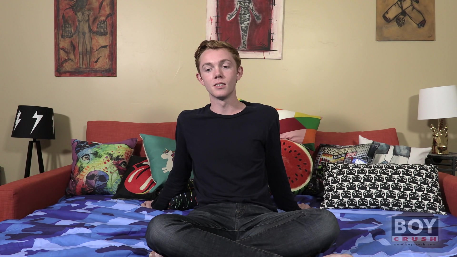 Andrew is a sweet young man, sexy and smooth, horny and willing to show off for the camera. We find out a little about him, his love of reading and dancing, his appreciation for certain TV shows (no real surprises there!) When he gets down to his solo he reveals a smooth and long cock, a tight little hole and some great balls. Watch him satisfying himself with a glass dildo and splashing out his first load for us, hopefully one of many!