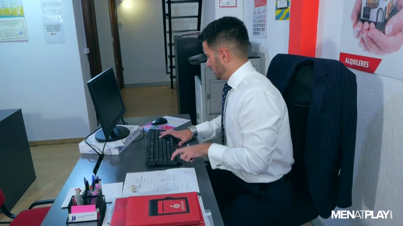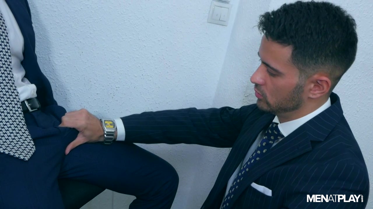 Ricky Blue is suited (for the first time on MENatPLAY) and at the office along with big dicked submissive bottom Robbie Rojo. Robbie notices that Ricky’s been quiet today and asks if he’s okay. Apparently, things haven’t been going well with Ricky and his wife for months - including some sexual frustration and a serious case of blue balls!