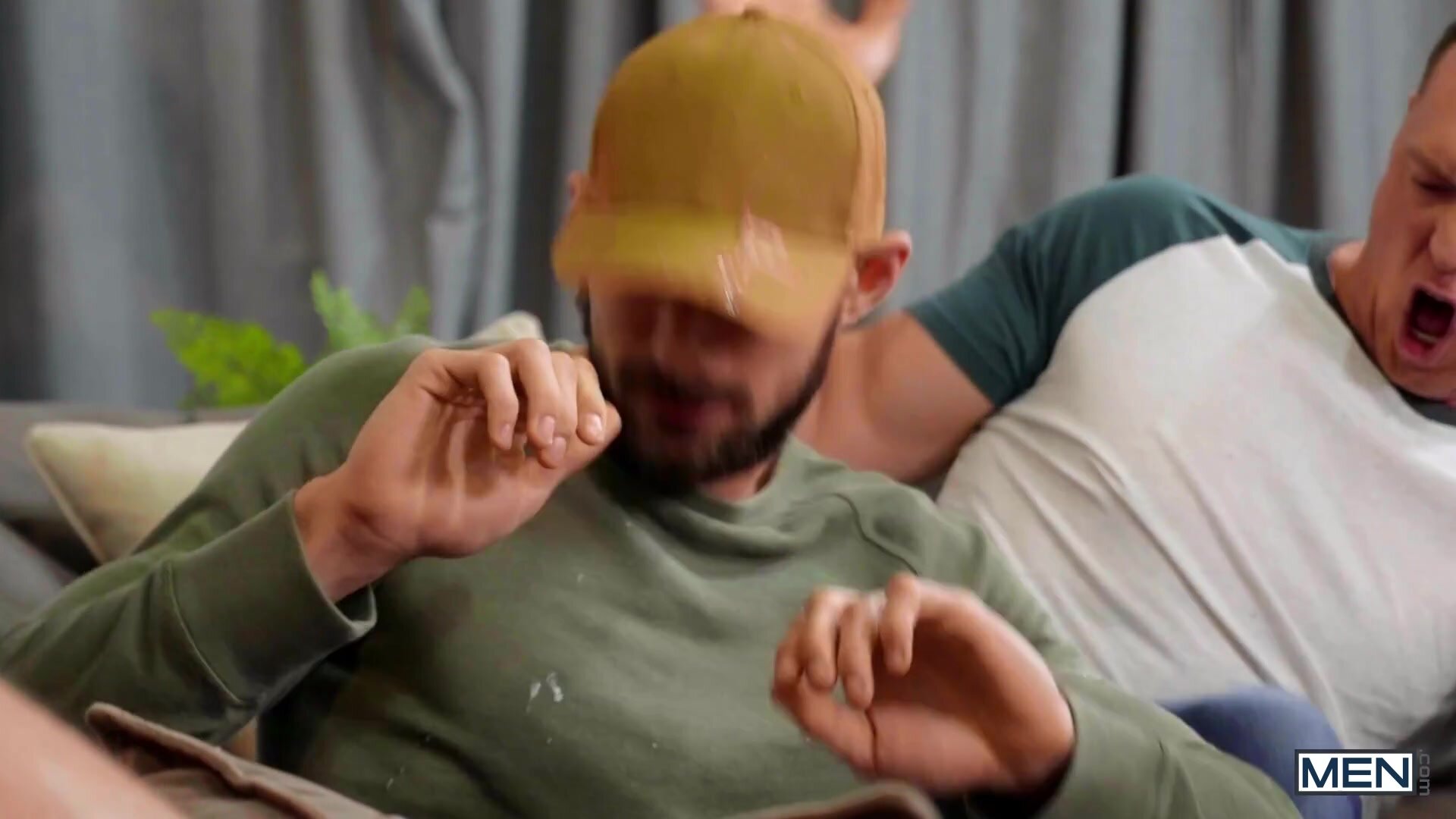 Description: Nate Grimes asked his polyamorous boyfriends Pierce Paris and Johnny B for a double facial, but at the last second, he dodged it! Johnny and Pierce resolve to get Nate next time, but he keeps eluding all their attempts, while sneakily jizzing on both their faces when they least expect it. After blindfolding the cum dodger with his own underwear, the guys finally give Nate what's been cumming to him, then celebrate with a threesome. Johnny fucks Nate doggystyle as Nate sucks Pierce's cock, then it's Johnny's turn to get pounded in piledriver by Pierce as he sucks Nate's dick before Nate fucks Johnny doggystyle. Pierce and Nate take turns stretching Johnny's tight hole, then Nate lies back to take the double facial he deserves before cumming all over himself.