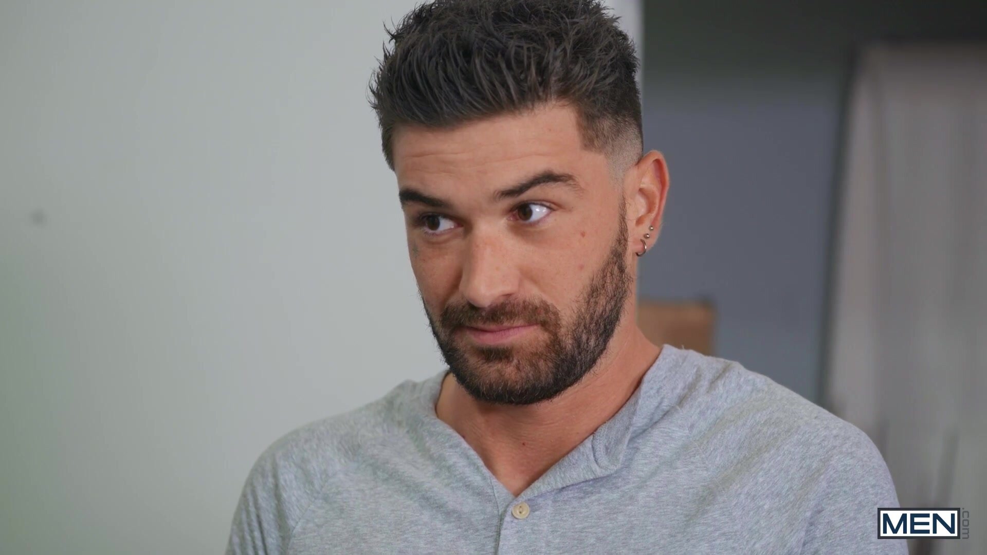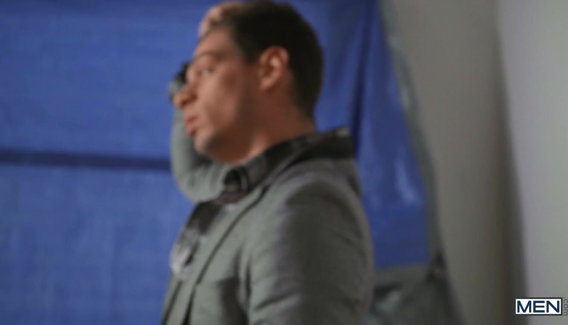 Hetero homeowner Chris Damned is curious about his Homo Renovation, so he sneaks in for a peek. Most of his man stuff is gone, but he finds a box of porn and starts jerking his dick. Host Michael Del Ray spots the horny straight jacking it and quickly gets naked except for a hard hat. In the blink of an eye, Chris is getting his cock expertly sucked by a dude! Chris fucks Michael doggystyle over the couch, and when his wife comes looking for him, Michael doesn't let on that her hubby is laying pipe as he sends her away. The top fucks Michael missionary, then the bottom rides Chris's cock before bending over a sawhorse to get nailed till he cums and take a facial!